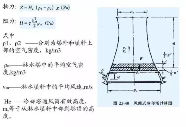 1和2不用解釋,過(guò)程3中需要一個(gè)公式,即冷卻的能力(單位面積抽力)只和冷卻塔的高度和內(nèi)外氣體密度差有關(guān),因此冷卻塔造得越來(lái)越高,現(xiàn)如今通常都在100米以上,而新造塔都超過(guò)了160米甚至出現(xiàn)很多超過(guò)200米的塔。
