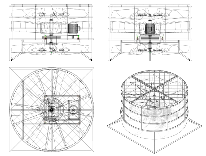 該風(fēng)機(jī)被用在超靜音冷卻塔配置上,風(fēng)機(jī)為鋁合金設(shè)計(jì),航空級(jí)鋁合金葉片,輪轂采用金屬模成型,葉片用不銹鋼U型碼連接,無級(jí)調(diào)節(jié)風(fēng)機(jī)角度,表面噴涂防腐處理,具有全壓高、風(fēng)量大等優(yōu)點(diǎn)。而且其氣動(dòng)性能好、高強(qiáng)度、耐腐蝕,并可通過改變?nèi)~片安放角度方法滿足工藝要求及提高裝置效率。該風(fēng)機(jī)最大的特點(diǎn)是突破傳統(tǒng)冷卻塔的4片、6片或者8片風(fēng)葉,該技術(shù)為國(guó)家發(fā)明專利,在一臺(tái)冷卻塔上安裝多層多片風(fēng)葉,常規(guī)配置為21片超靜音風(fēng)葉,保證風(fēng)量滿足的情況下達(dá)到降低噪音的效果;